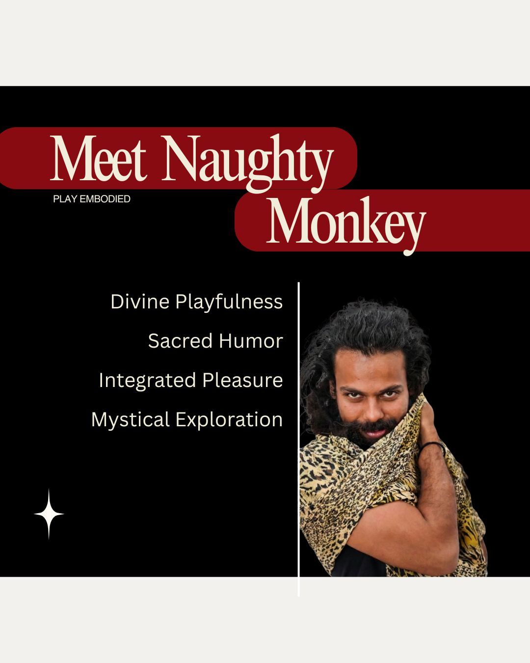Naughty Monkey aka Pratim is a serious student of the discipline of Divine Playfulness. Born and raised in India, he once lived the life of an A+ achiever, an engineer at Intel following every rule of success, until a divorce cracked open deeper questions: What do I truly want? Who am I, really?